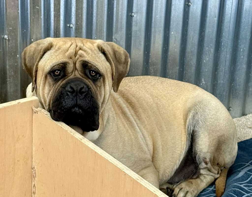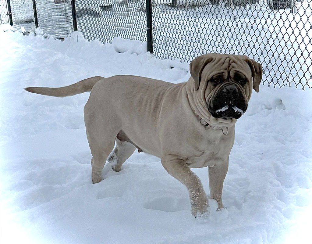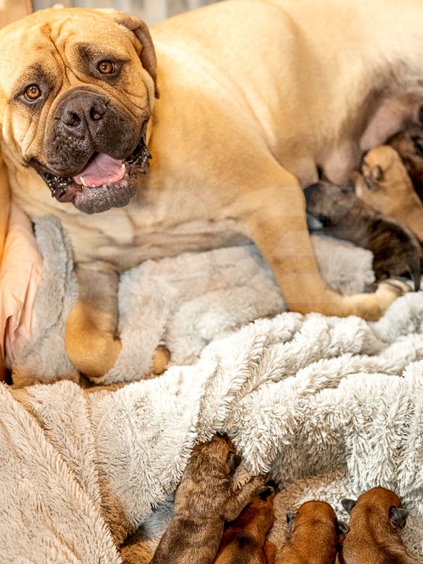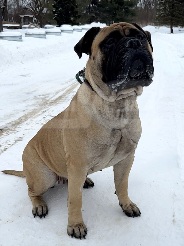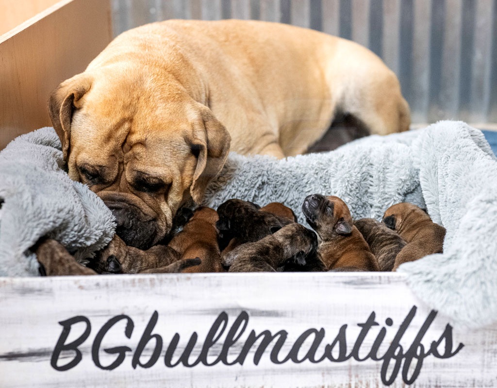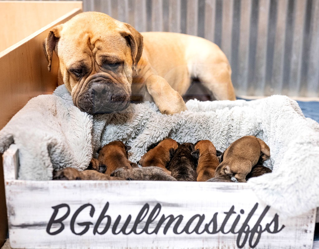 Raya has a fantastic pedigree for looks and temperament. She is our youngest female that was born and raised here at BG BULLMASTIFFS. Her temperament reflects the gentle nature of both her parents, Nala and Rugar. We also see that our love and care that we provide from day one is very evident in her laid back nature.